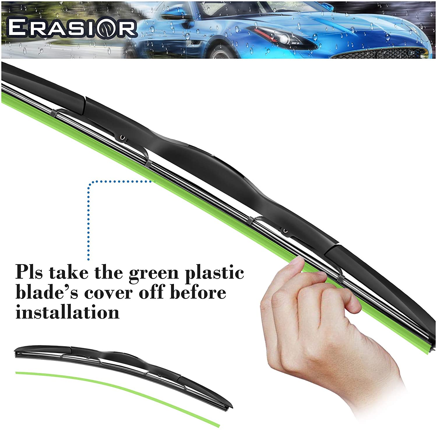 0 STREAK COMMITMENT: three section hybrid style wiper reduces drag, keeps wiping stable. The natural rubber material of the wiper blades is tightly attached to the windshield, without leaving any gaps, sweep away the rain, 180 degrees without dead angle£¨Attention: pls take the blade's protector cover off!£©