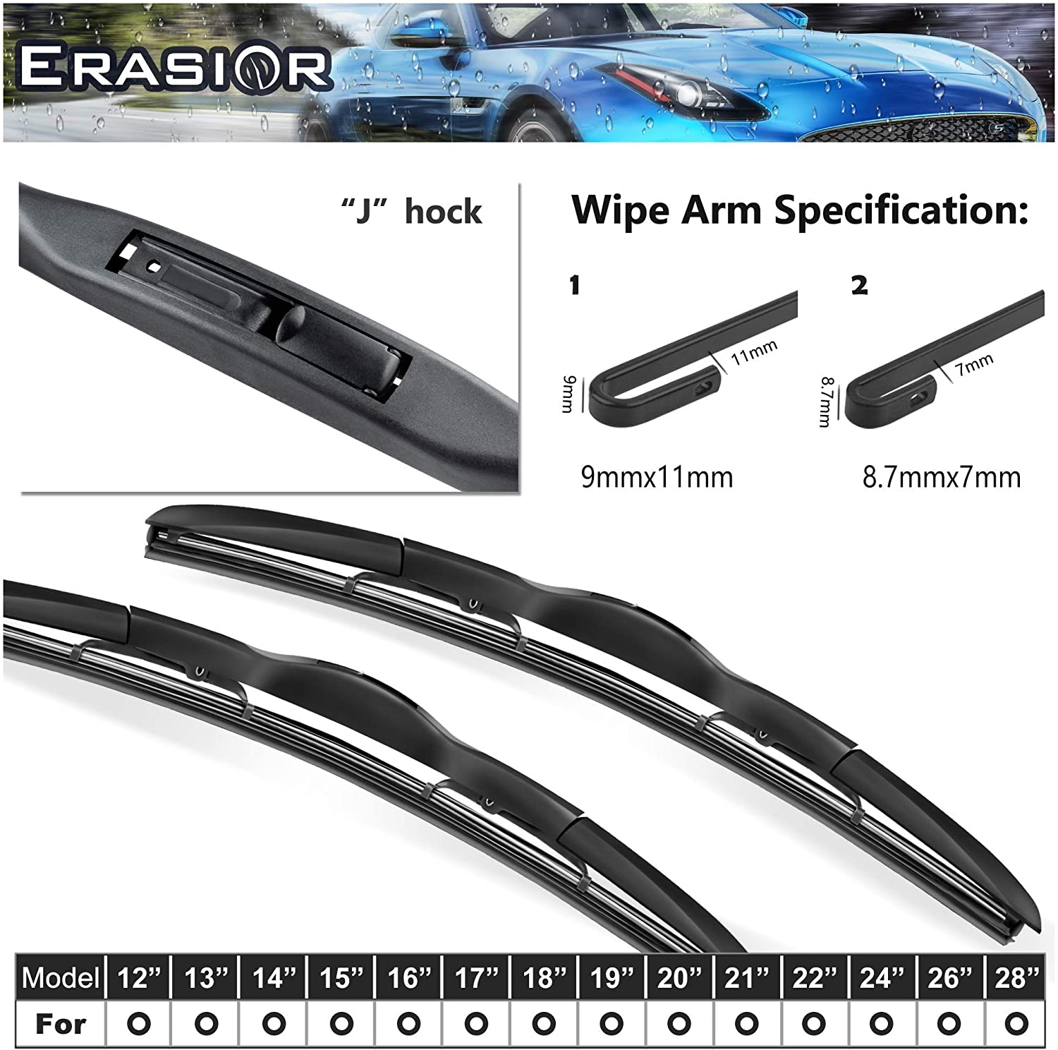Erasior wiper Blade J Hook Specifications: