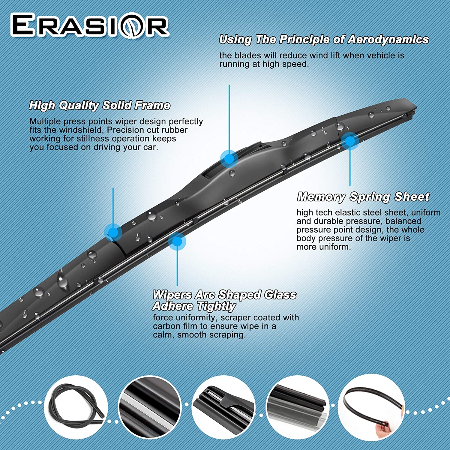 Erasior Hybrid wiper blade U Hook Drive and Passenger Side Wiper (set of 2)
